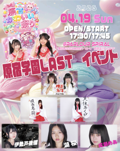 青山なな子、成瀬めあ、NYAAANYA、湖桜、SPIRALGIRLS、伊勢戸徠瑠、吸血鬼萌、天使あくび、原宿LAND 詳しくみる