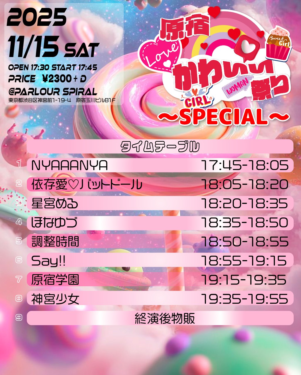 出演:神宮少女/Say!!/NYAAANYA/原宿学園/ほなゆづ/星宮める/依存愛♡バットドール”