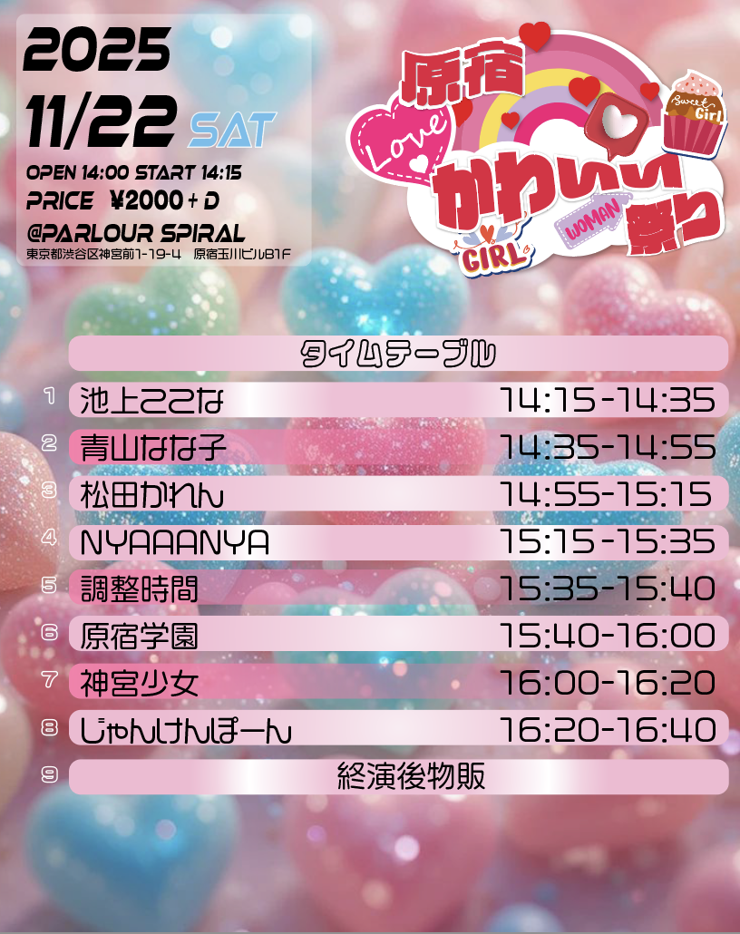 | 出演 | 青山なな子 原宿学園 NYAAANYA 神宮少女 松田かれん、池上ここな |