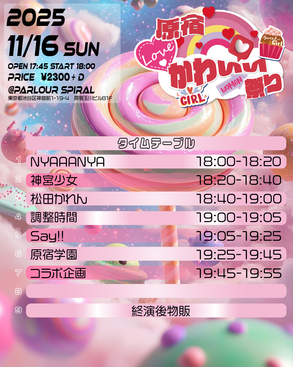 出演:出演者:神宮少女/Say!!/NYAAANYA/原宿学園/松田かれん”