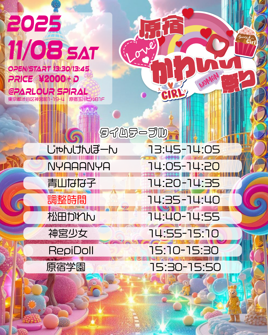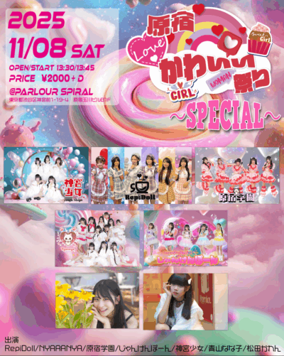 | 出演 | 青山なな子 原宿学園 NYAAANYA 神宮少女 じゃんけんぽーん 松田かれん、RepiDoll  |