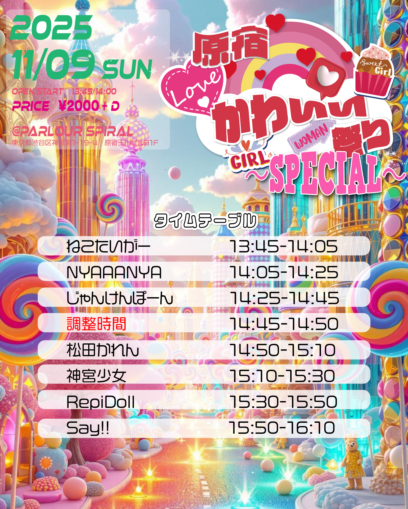 | 出演 | ねこたいがー NYAAANYA じゃんけんぽーん Say!! 神宮少女 松田かれん、RepiDoll |