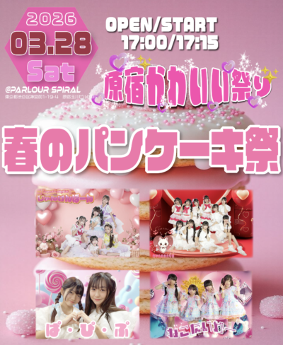 2026年3月28日 土曜日 原宿かわいい祭り〜春のパンケーキ祭〜 会場:PARLOUR『SPIRAL』 配信 https://www.showroom-live.com/lovemark ¥1.100 OPEN/START 17:00/17:15