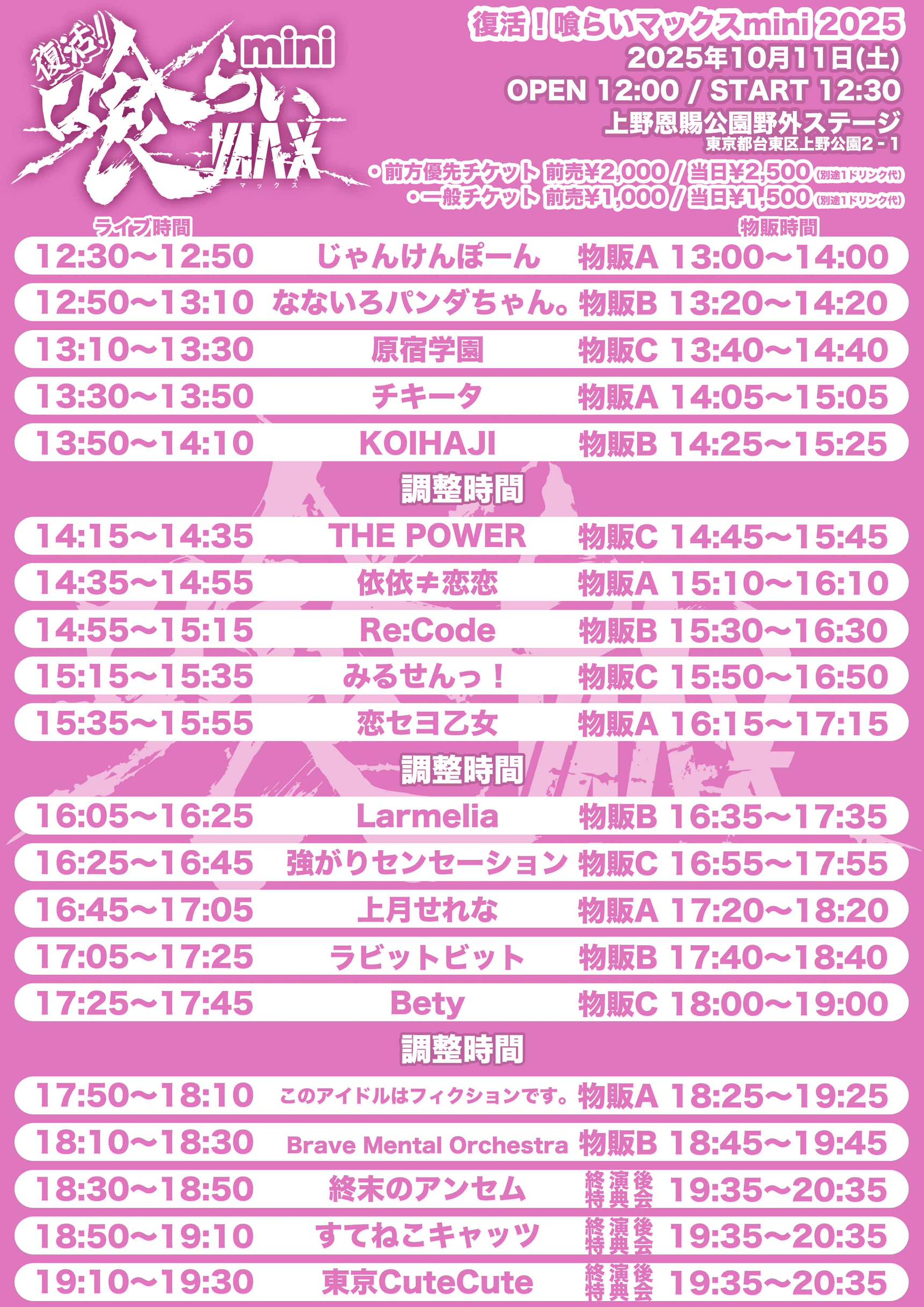 出演 | 原宿学園 じゃんけんぽーん 出演時間 じゃんけんぽーん 12:30~12:50 原宿学園 13:10~13:30 |