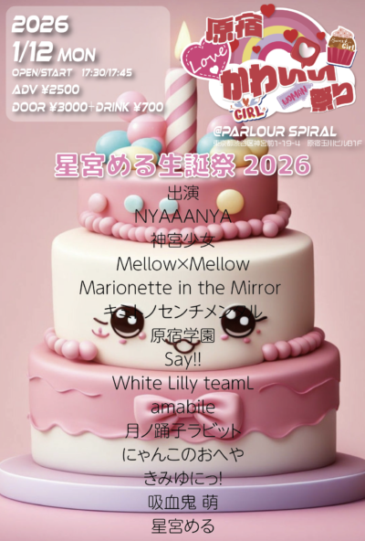 出演:NYAAANYA/神宮少女/Mellow×Mellow/Marionette in the Mirror/キミトノセンチメンタル/コラボ枠/原宿学園/Say!!/White Lilly teamL/amabile/月ノ踊子ラビット/にゃんこのおへや/きみゆにっ!/星宮める/吸血鬼 萌 詳しくみる